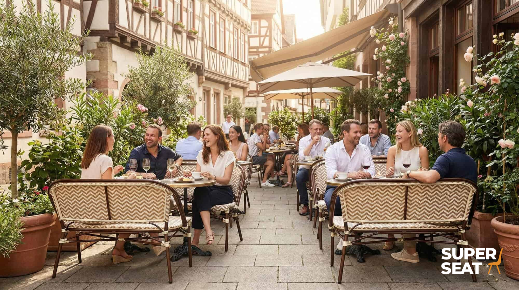 Ideal für Cafés, Bistros und Terrassen, die einen stilvollen, gemütlichen Look schaffen wollen.